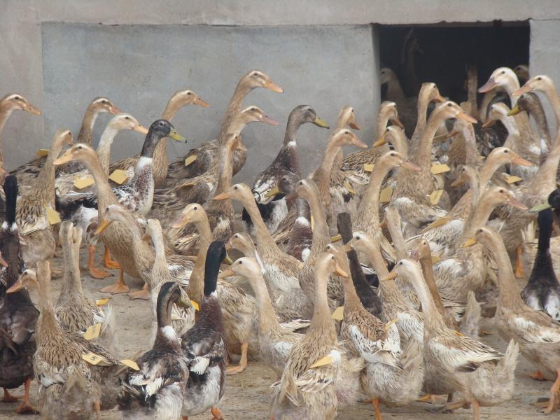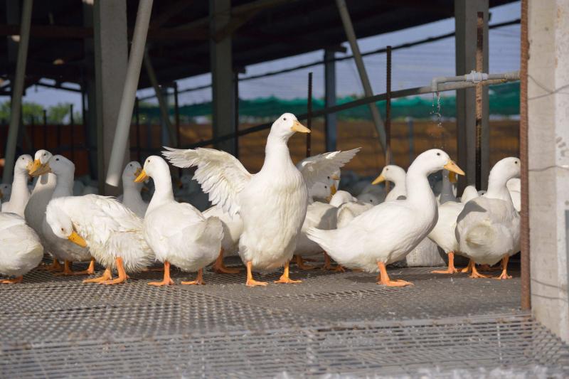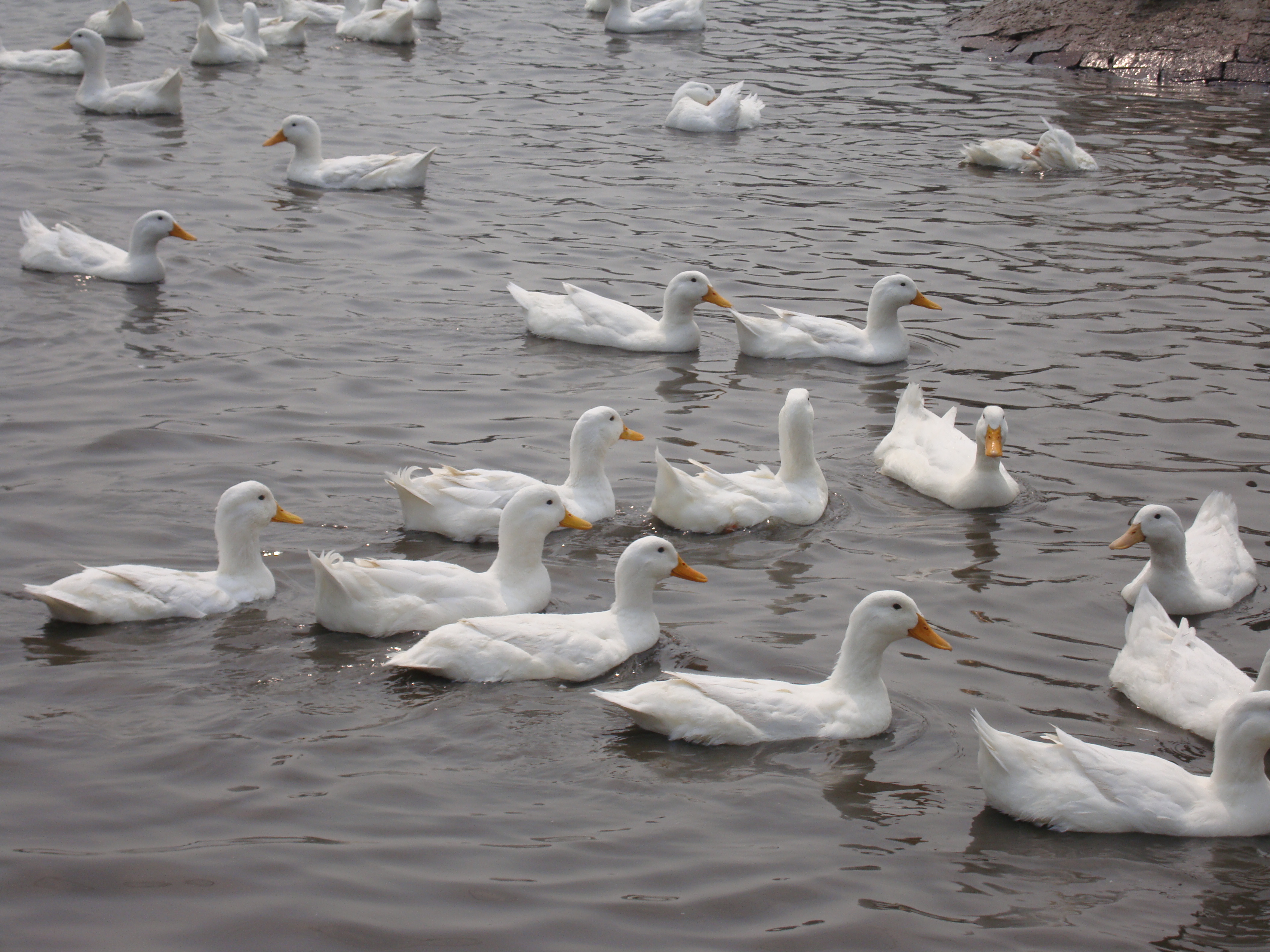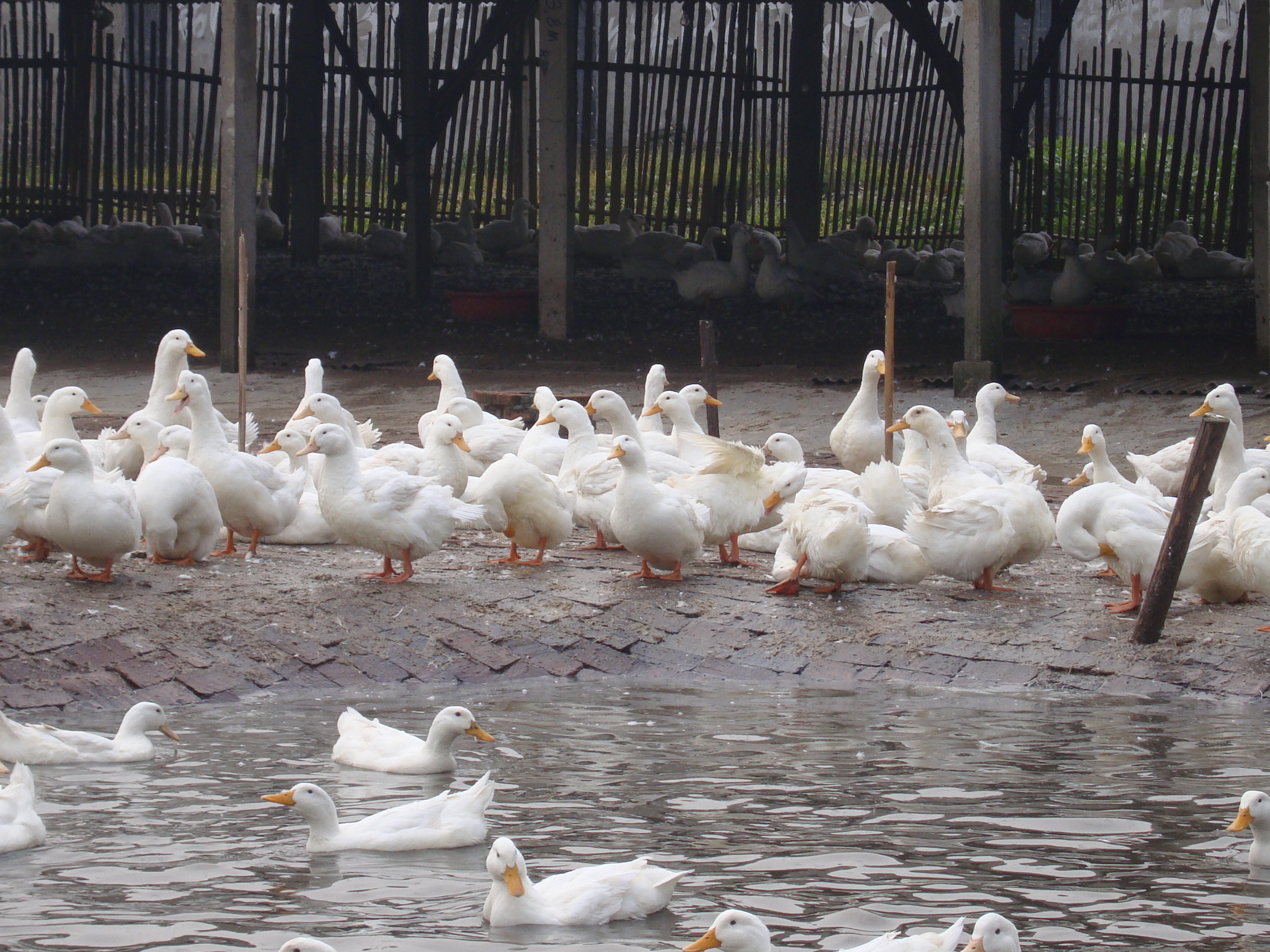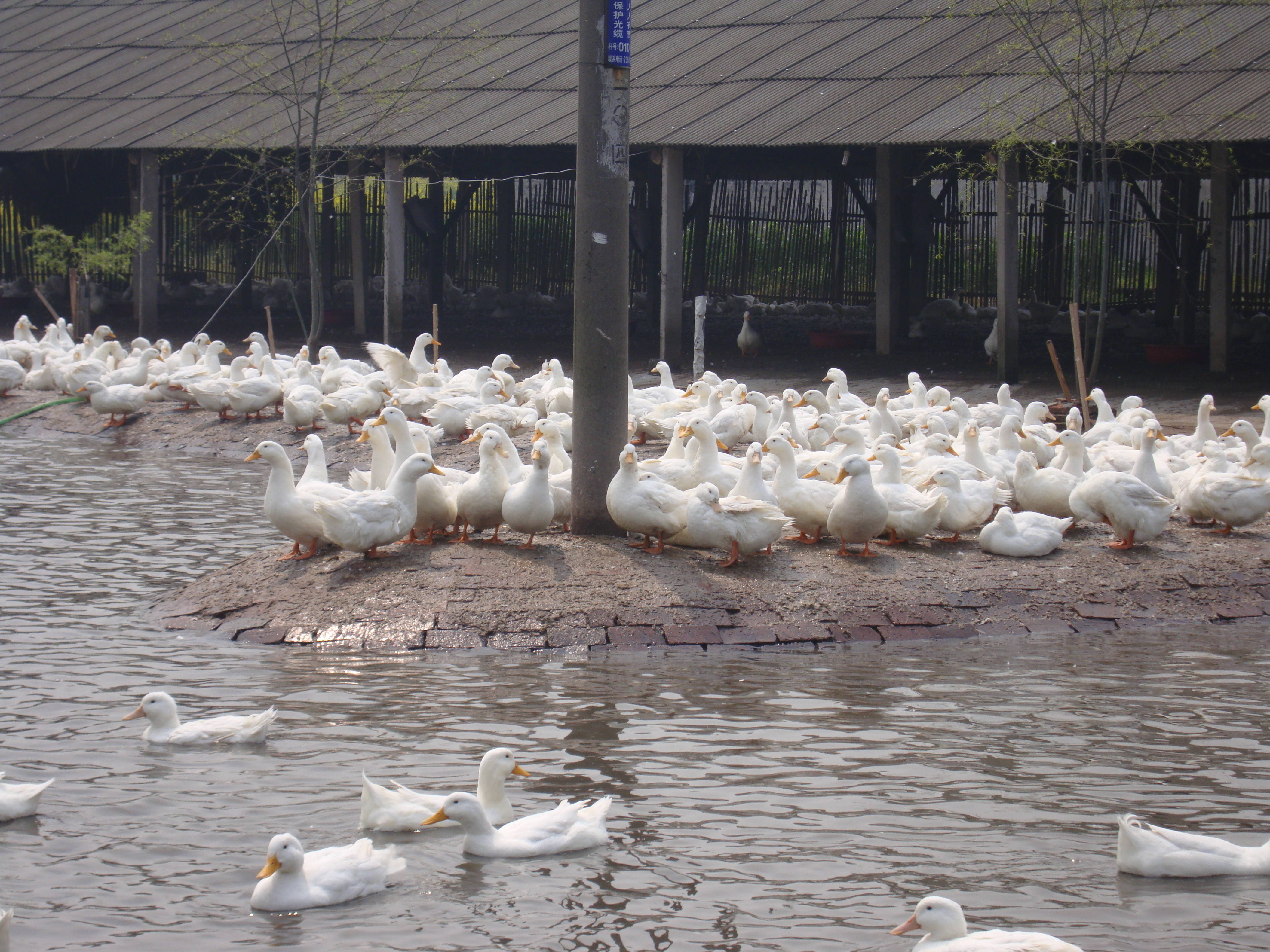 北京鸭是世界著名的优良肉用鸭标准品种。具有生长发育快、育肥性能好等特点,是闻名中外的“北京烤鸭”的制作原料。北京鸭全身羽毛纯白,略带乳黄光泽,体型硕大丰满,躯体呈长方型,前部昂起,背宽平,胸部腹部突出,两翅小而紧贴体躯,尾部钝齐,微向上翘起。原产于北京西郊玉泉山一带,现其养殖地点已遍布世界各地,在国际养鸭业中占有重要地位。上世纪50年代,经欧美的商业化育种,北京鸭被逐渐改良为适合规模化、工业化生产需求的樱桃谷鸭和枫叶鸭。