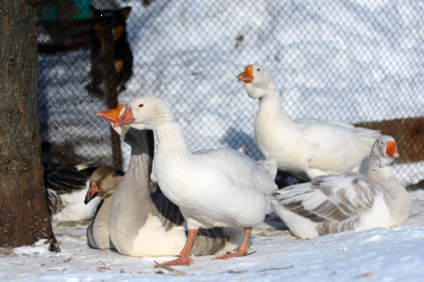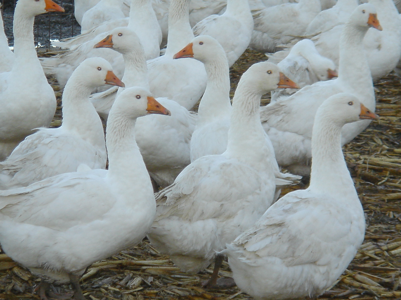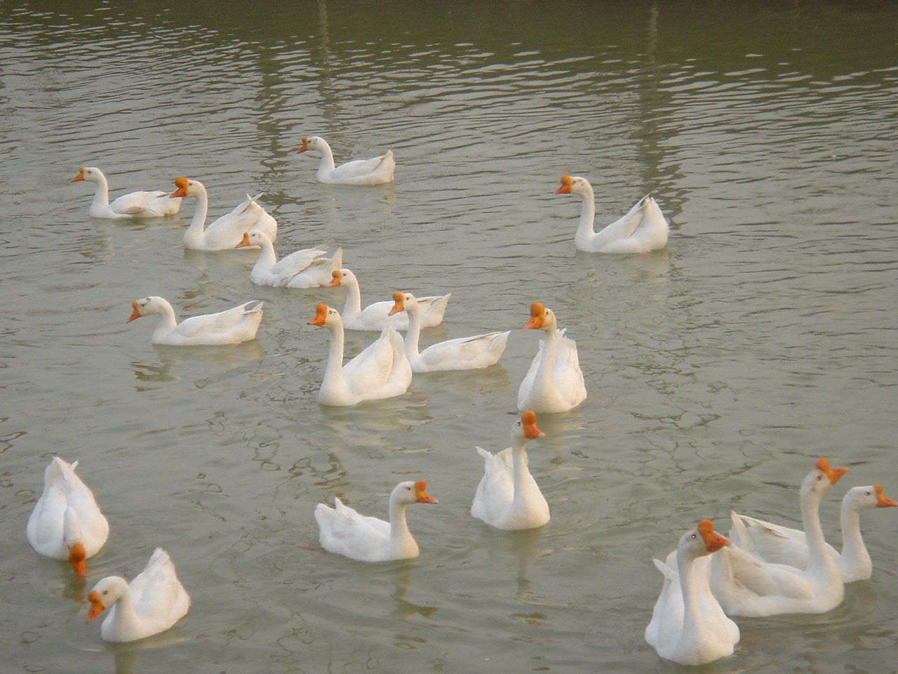 松花江白鹅以其全身羽毛洁白、产绒量多而闻名,松花江白鹅体型较小,略呈长圆形。羽毛洁白,颈细长,肉瘤较小,颌下偶有垂皮,即咽袋。喙、胫、蹼皆为橙黄色,虹彩为蓝灰色。腹部紧致不下垂。因其生长速度快,适应能力强,体型小,产蛋量高,抗寒能力强等优点而受到当地农户们的喜爱,并广泛饲养。为了更好地保护和改进松花江白鹅这一鹅种,黑龙江省畜牧研究所建有籽鹅保种场,黑龙江省农科院建有籽鹅繁育工程中心。